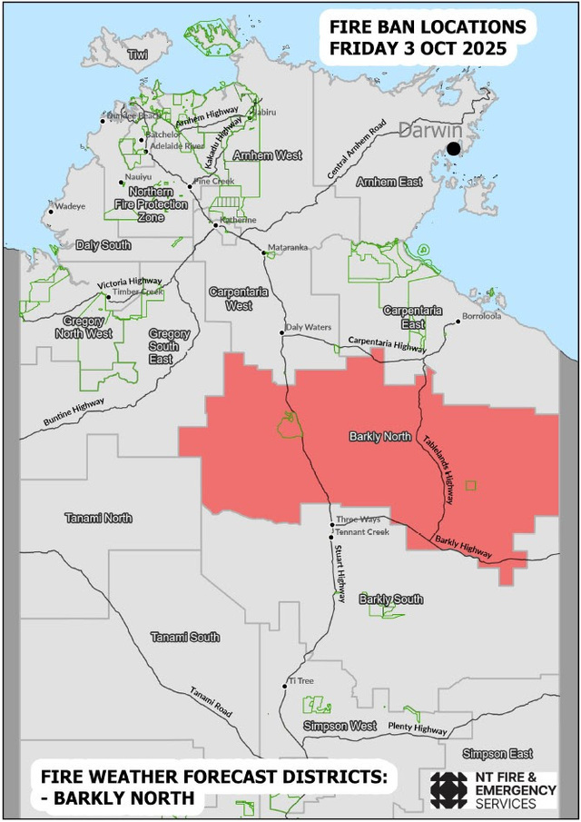 News 24 Hour fire ban for Barkly North 02/10/2025 FacebookTwitter FIRE BAN: Map indicating the area affected by a 24 HOUR FIRE BAN in force for the Barkly North region for October 3 Phil Williams Due to expected warm conditions, a 24 hour fire ban has been declared for an area north of Three Ways […] Subscribe or Login to see the rest of the content. Username Password * Remember Me Forgot Password