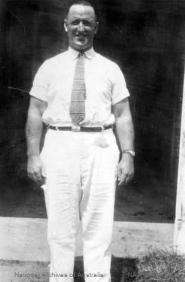 (1937). Photographs of the Northern Territory, 1930s-1941. Const. E.A. Sandy McNab. NT Police, Darwin. Legend has it that if anyone did not have a job in Darwin within 24 hours of arrival, he would take them out to the Berrimah line, give them a boot in the backside and send them south. PIC: National Archives of Australia